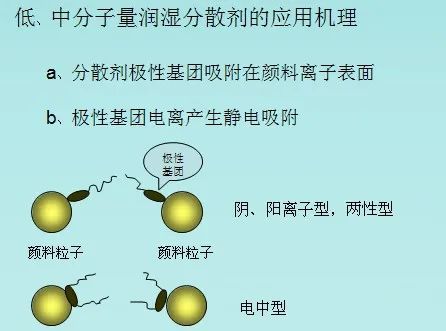 要想制備一個良好的 分散體有時必須要借助于濕潤分散劑的幫助。濕潤劑和分散劑都是界面活性劑,濕潤劑能降低液 / 固之間的界面張力,增強顏料的親液性,提高機械研磨效率。分散劑吸附在顏料的表面上構成電荷作用或空間位阻效應,使分散體處于穩定狀態。